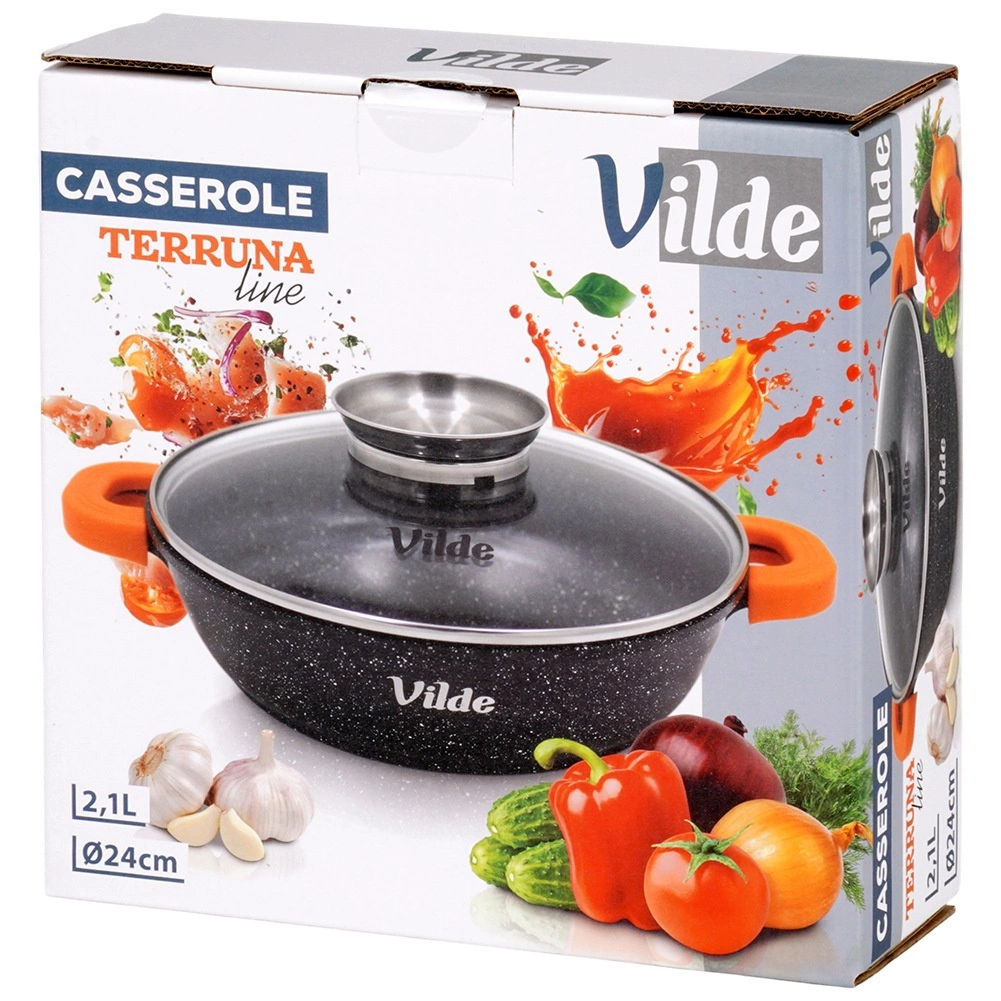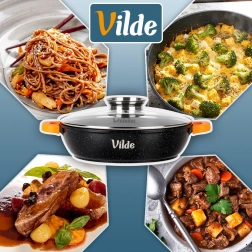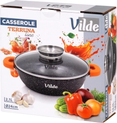 Tigaia adâncă TERRUNA AROMA 24 cm este o soluție universală pentru gătitul zilnic – de la prăjire rapidă la înăbușire și până la gratinare. Corpul din aluminiu rezistent, cu strat antiaderent din granit, asigură o distribuție uniformă a căldurii și eliberarea ușoară a preparatelor. Capacul de sticlă cu mâner din inox și dozator integrat permite turnarea apei, a vinului sau a sosurilor fără a ridica capacul.