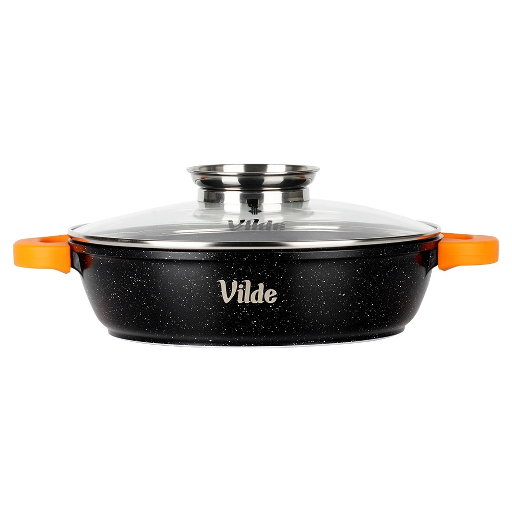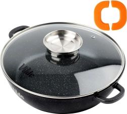 Stratul durabil din granit permite prăjire și înăbușire cu minimum de grăsime. Suprafața se curăță ușor și este potrivită pentru mașina de spălat vase.