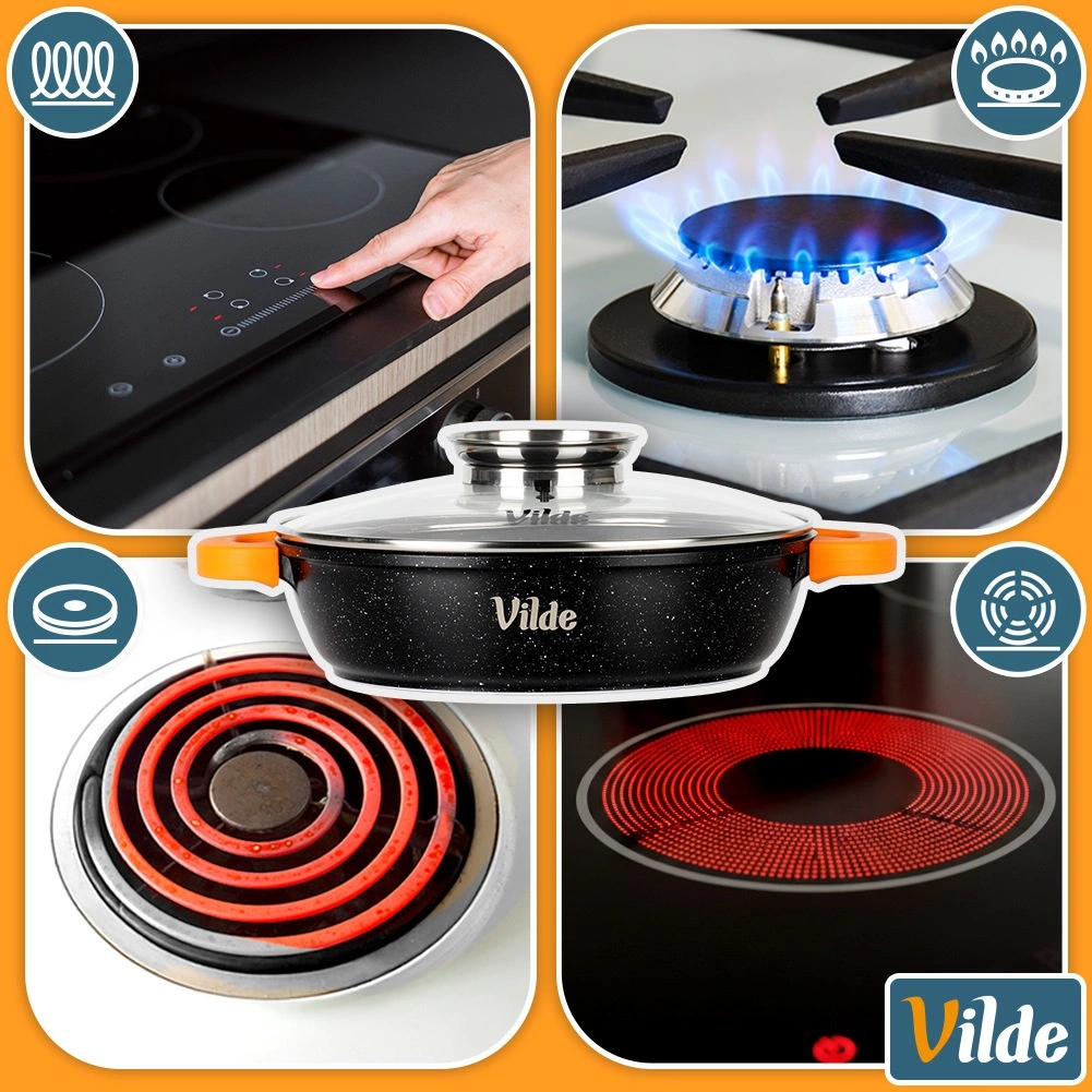 Practicile mâneci din silicon în culoare portocalie asigură o prindere fermă și o manipulare sigură chiar și la temperaturi înalte. Tigaia este compatibilă cu toate tipurile de plite, inclusiv inducție, și poate fi utilizată în cuptor până la 200 °C (fără capac). Aspectul elegant permite servirea preparatelor direct pe masă.