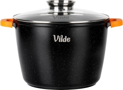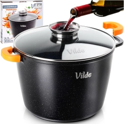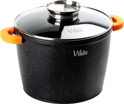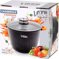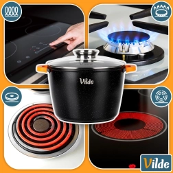 Utilizare universală: gaz, electric, vitroceramică, inducție și coacere în cuptor până la 200 °C (fără capac). Produs original marca VILDE din linia TERRUNA AROMA.