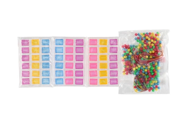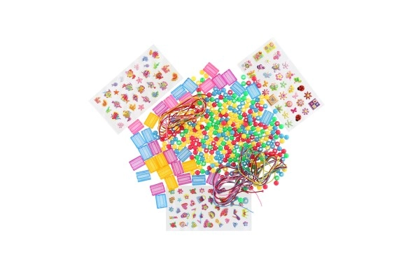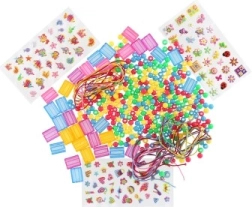 Pachetul include piese pătrate, mărgele din plastic în diverse forme și culori, elastice și autocolante din spumă pentru a desăvârși un stil unic. O alegere excelentă pentru activități acasă, petreceri pentru copii și cadouri.