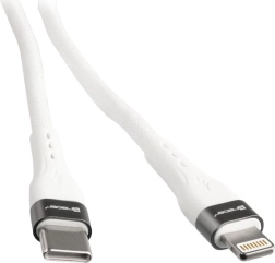 Cablu USB‑C la Lightning de 1 m, rezistent, pentru încărcare rapidă și transfer de date fiabil. Oferă putere de până la 60 W, viteză de 480 Mb/s, împletitură textilă și conectori din aluminiu pentru durabilitate maximă și siguranța dispozitivelor.