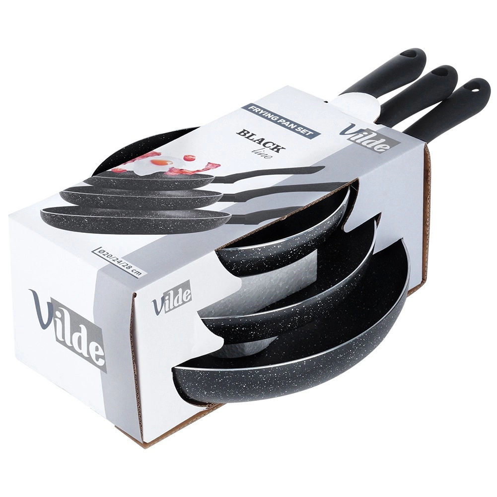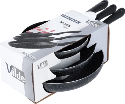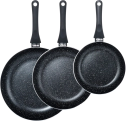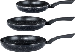 Setul de trei tigăi BLACK LINE combină aluminiu turnat de calitate, pentru o distribuție rapidă a căldurii, cu un strat antiaderent din granit durabil pentru gătit mai sănătos. Datorită celor trei dimensiuni, pregătiți cu ușurință ouă, legume și fripturi – de fiecare dată cu distribuție uniformă a căldurii și eliberare facilă a preparatului.