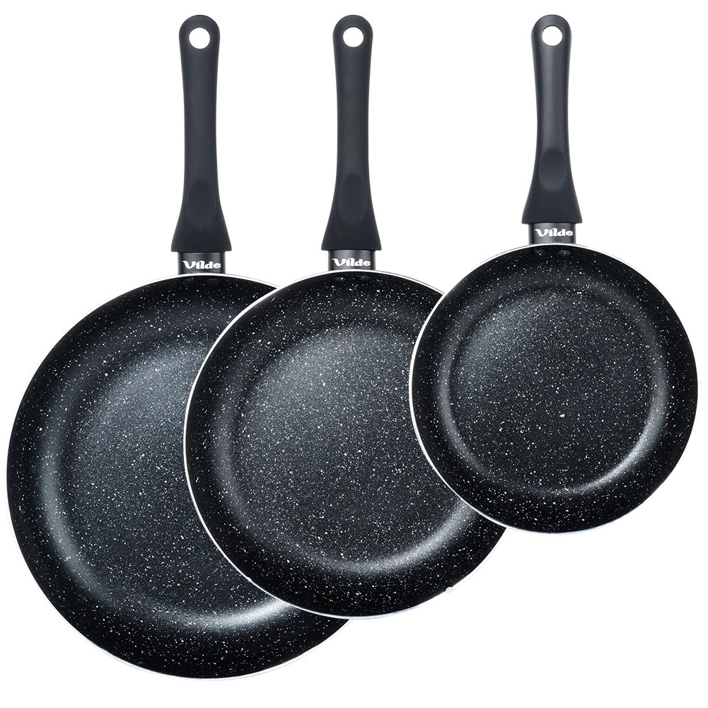 Diametrele de 20, 24 și 28 cm acoperă totul de la mic dejun la cină – de la rumenirea rapidă a ouălor până la porții mai mari de carne și legume.