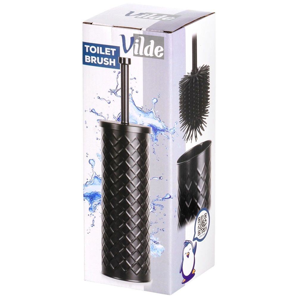Acest set practic de perie WC cu suport metalic îmbină funcționalitatea și stilul. Capul din silicon cu proeminențe dese curăță eficient vasul, nu deteriorează suprafața și, datorită materialului neaderent, se menține ușor curat. Recipientul închis cu scurgător reține apa în exces departe de podea și contribuie la o igienă mai bună și la eliminarea mirosurilor.