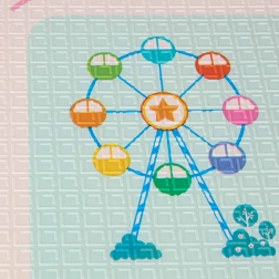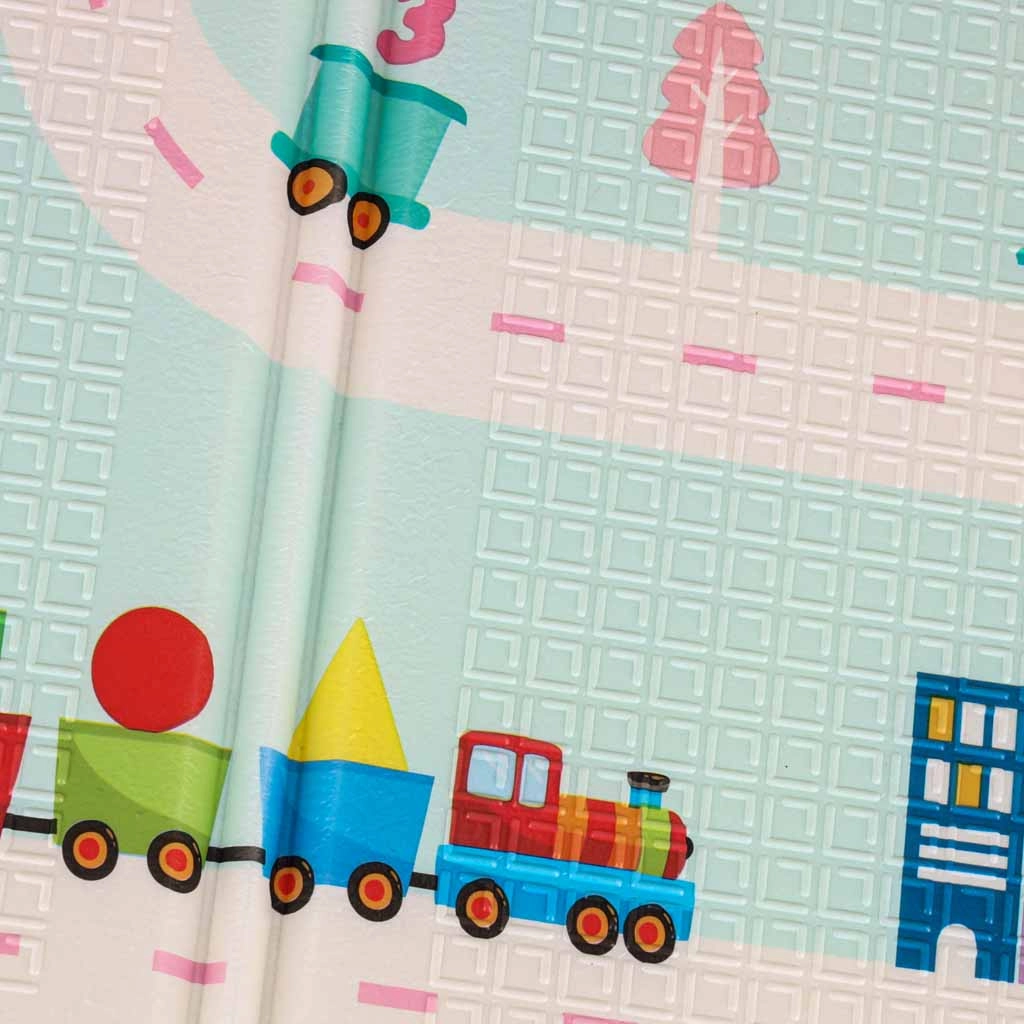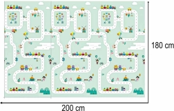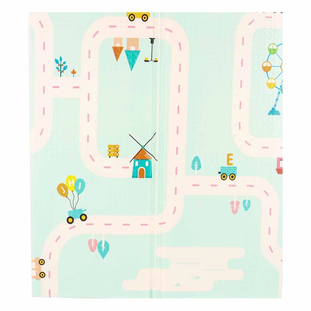 Covorașul din spumă, dublă față, cu dimensiunile 180 × 200 × 1 cm, creează un spațiu sigur și confortabil pentru joacă, primele rostogoliri și târâre. Spuma XPE densă atenuează șocurile, protejează de frigul pardoselii, iar textura antiderapantă asigură stabilitate la mișcare. O parte cu pandale drăgălașe și cealaltă cu motiv rutier susțin imaginația și învățarea.