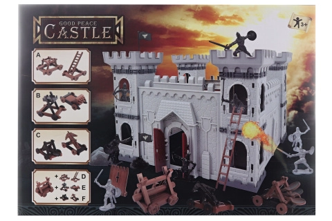 Acest set de joacă complet aduce copiilor aventuri ale asediilor medievale. Castelul robust din plastic, cu turnuri și creneluri, este completat de figurine de cavaleri și arme, astfel încât copiii își pot crea propriile povești și strategii. Datorită dimensiunilor compacte, castelul se transportă și se depozitează ușor.