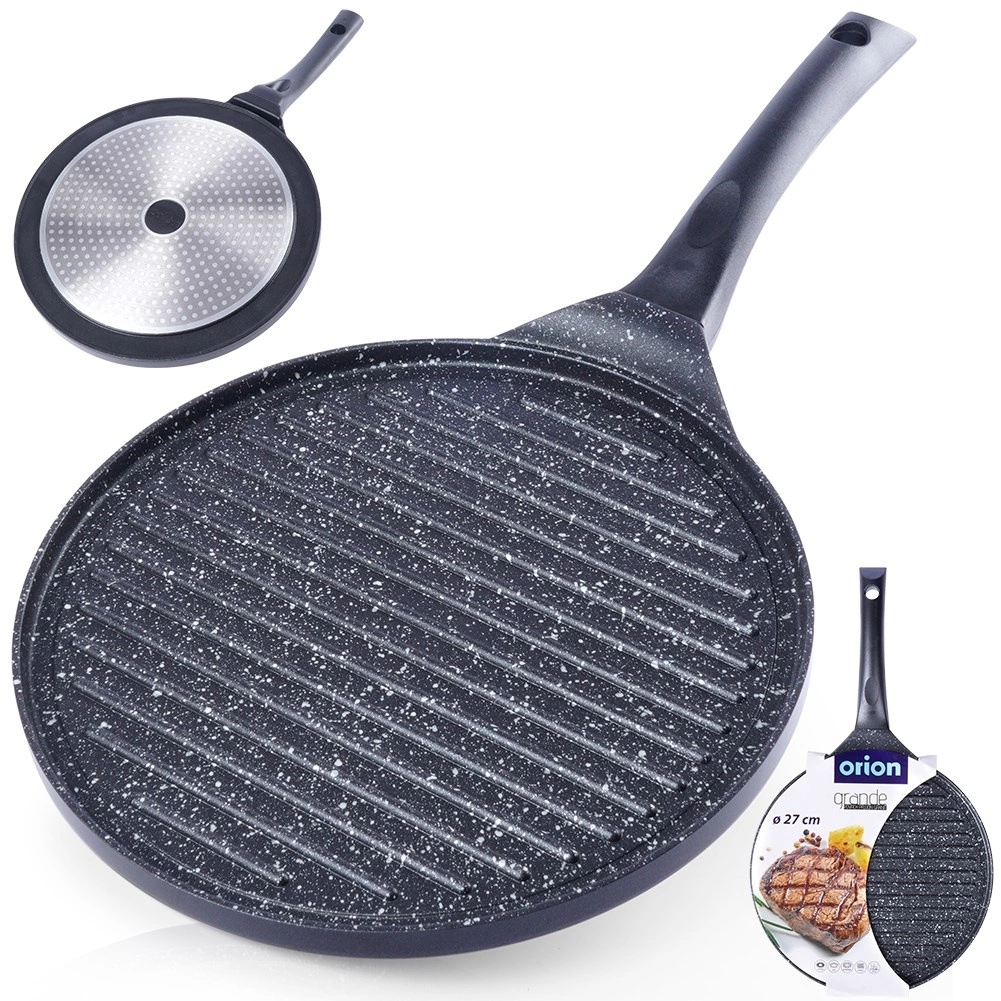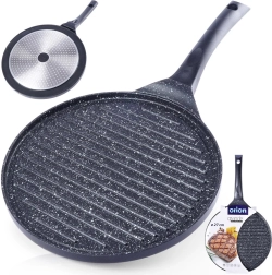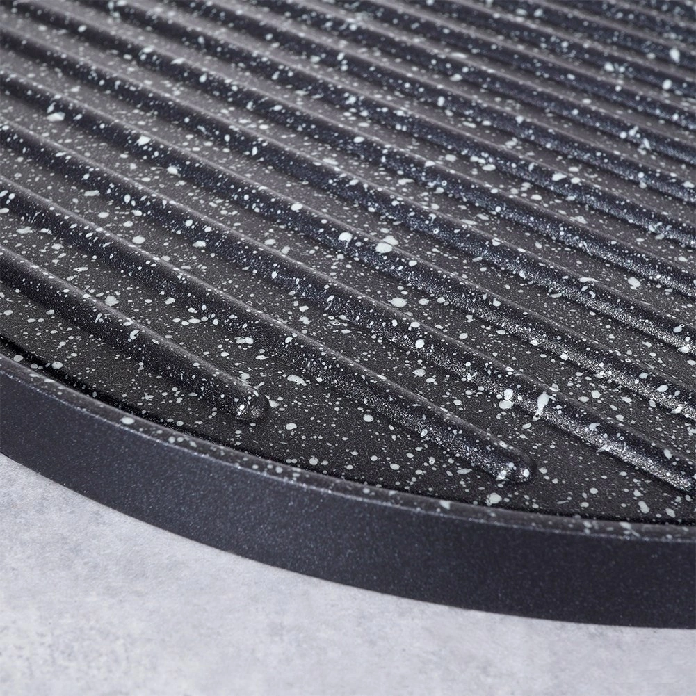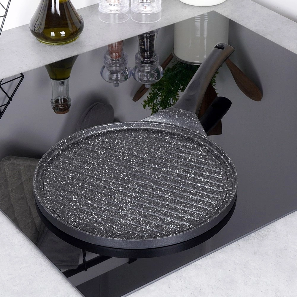 Această tigaie grill din aluminiu turnat, cu strat granit antiaderent fără PFOA, este creată pentru utilizare zilnică și pentru grătar mai solicitant. Suprafețea striată evacuează excesul de grăsime și asigură contact intens cu căldura pentru fripturi suculente, legume și burgeri. Fundul gros acumulează rapid căldura și o distribuie uniform pe toată suprafața.