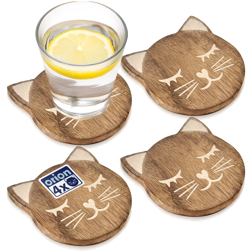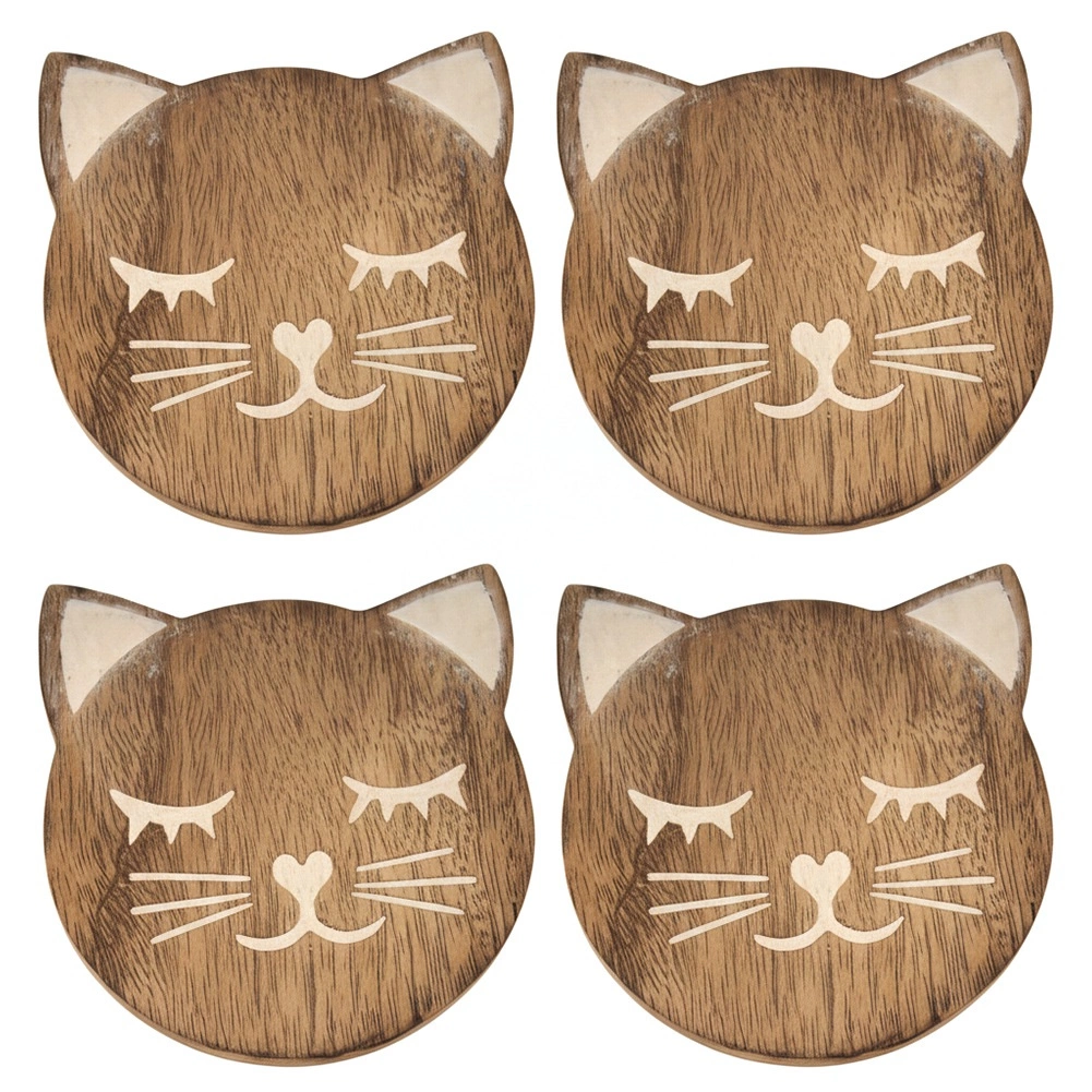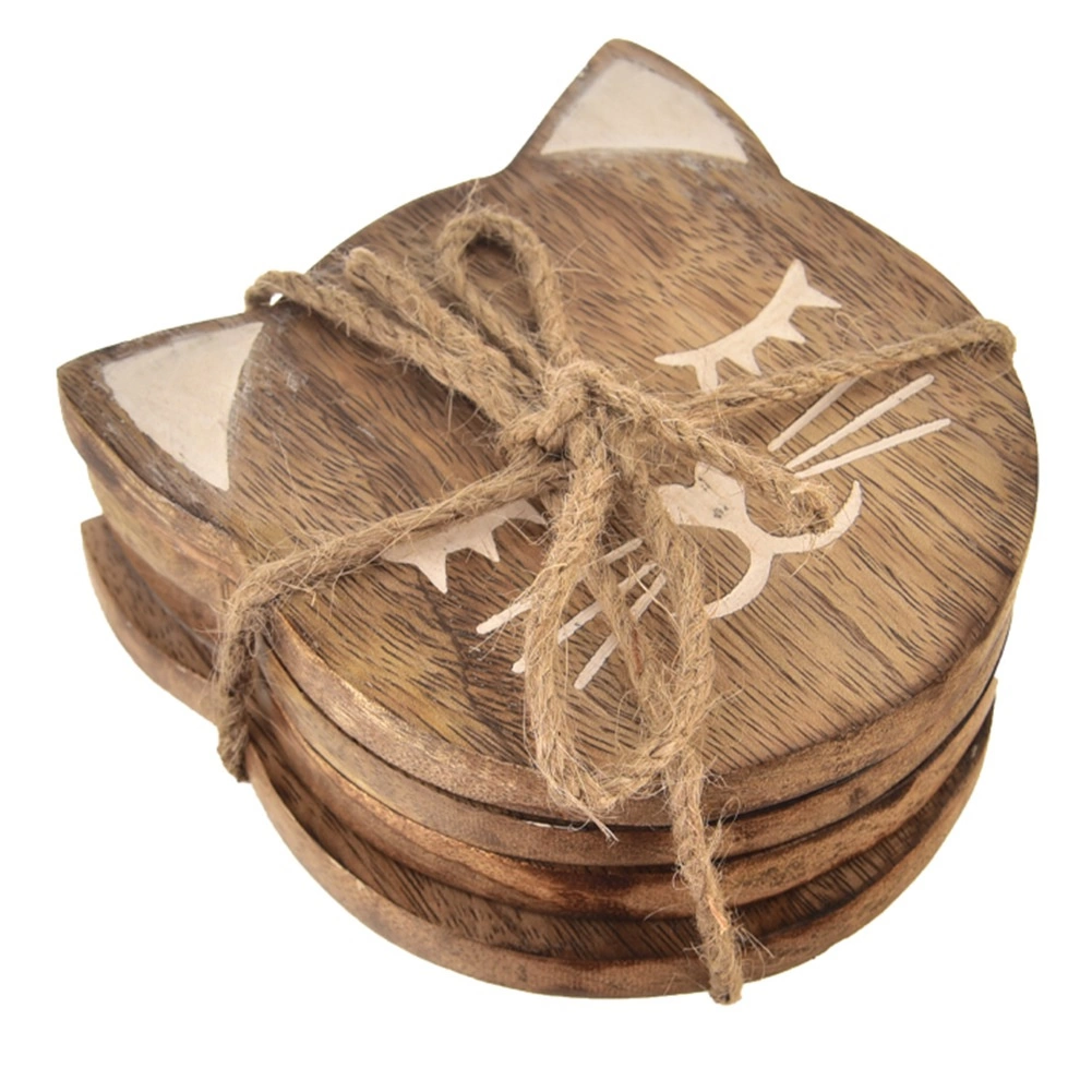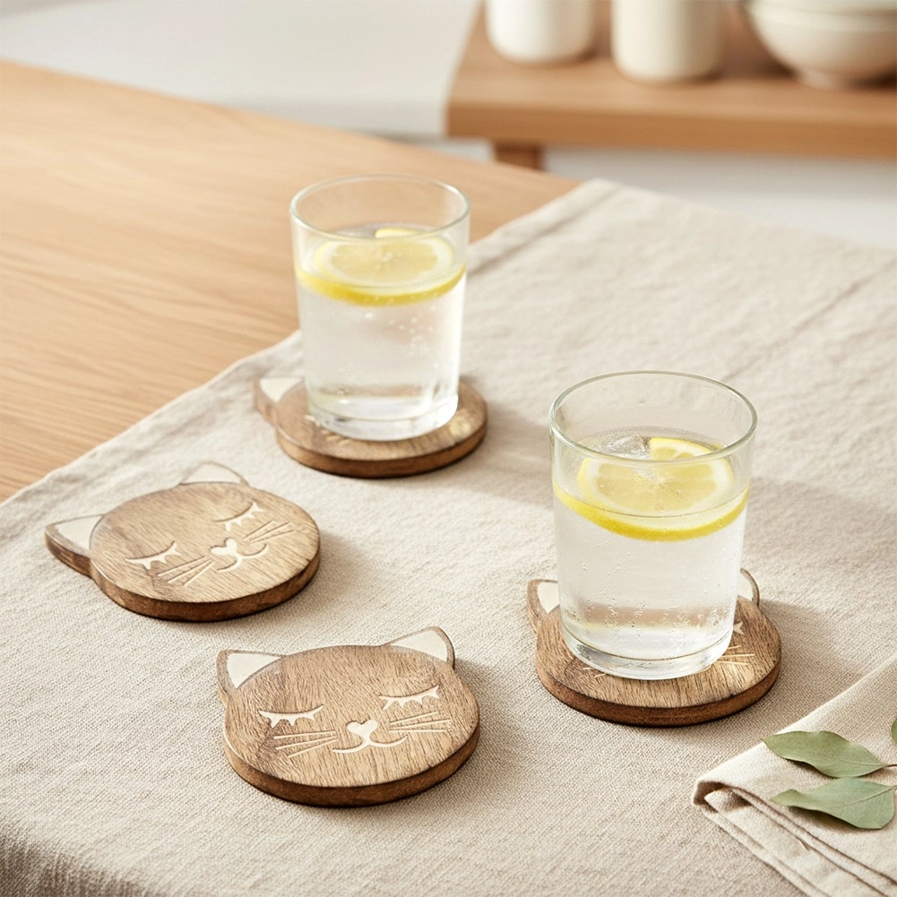 Descoperă suporturile practice și decorative care îmbină funcționalitatea cu stilul personal. Realizate din lemn natural de mango și decorate cu un motiv de pisică fin gravat, protejează în mod fiabil suprafețele de băuturile fierbinți și reci, de urmele de la pahare și de zgârieturi.