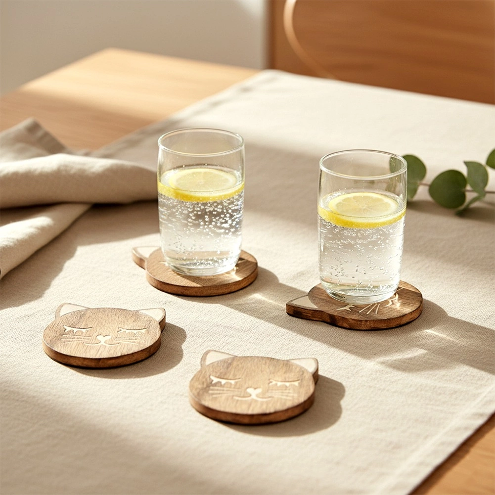 Datorită dimensiunilor compacte 10 × 11 × 1 cm, se potrivesc în bucătărie, sufragerie, birou sau cafenea. Silueta de pisică adaugă mesei un aer jucăuș și căldura casei – și, în același timp, arată grozav ca element decorativ, de exemplu pe o măsuță de cafea.