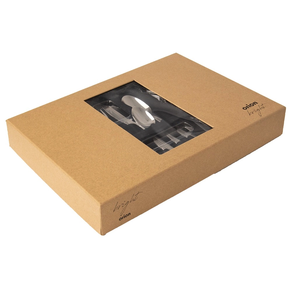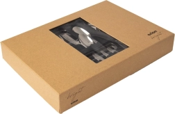 - 6× lingură 20 cm, 6× furculiță 20 cm, 6× cuțit 22,5 cm, 6× linguriță pentru ceai 16 cm