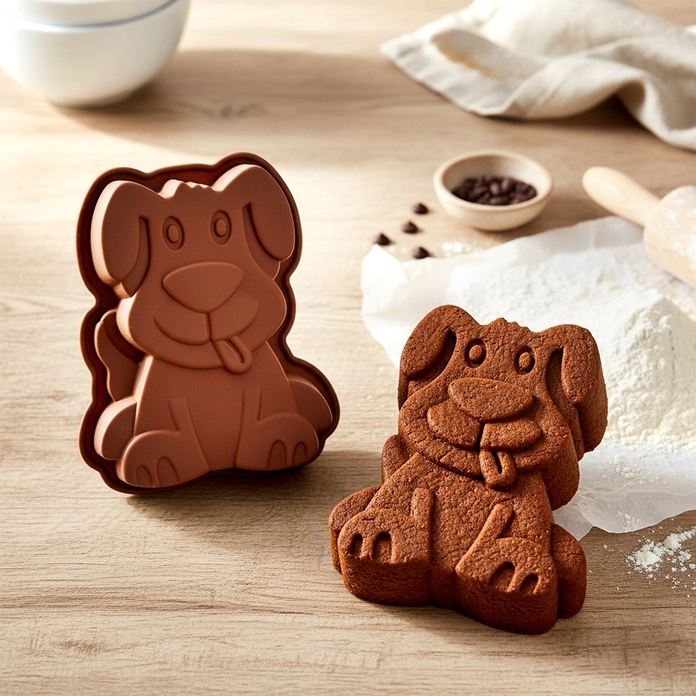 Cu această formă din silicon în formă de cățel veți pregăti checuri originale, blaturi de pandișpan, aluaturi bătute și dospite, dar și jeleuri, torturi fără coacere sau deserturi înghețate. Siliconul de calitate, de culoare maro, este antiaderent, flexibil și asigură coacere uniformă fără ardere. Desertul finit se scoate ușor și își păstrează toate detaliile în relief.