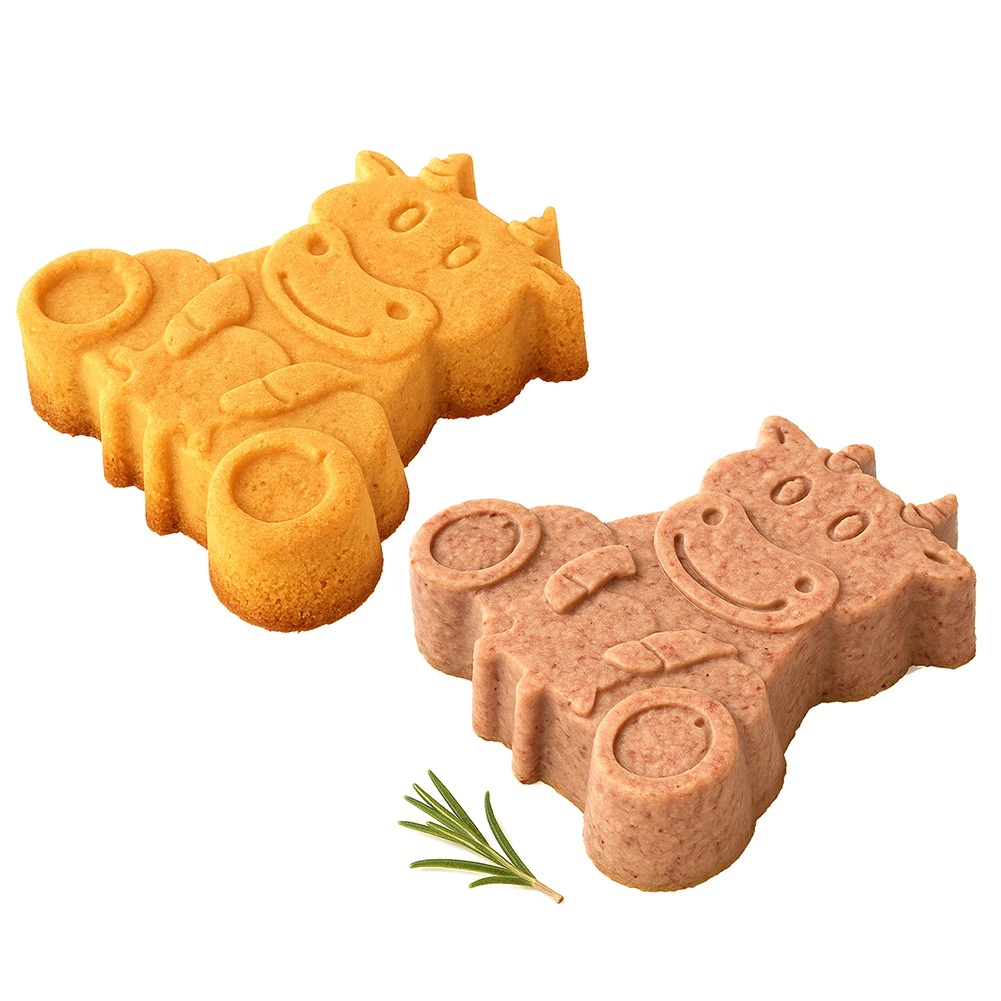 Cu această formă în formă de văcuță veți crea torturi originale, checuri, aluaturi pandișpan și fraged, jeleuri și deserturi congelate. Relieful detaliat oferă creațiilor dvs. un aspect jucăuș – ideal pentru petreceri pentru copii, copt creativ și distracție cu cei mici. Siliconul asigură scoaterea ușoară fără rupere și un contur clar minunat.