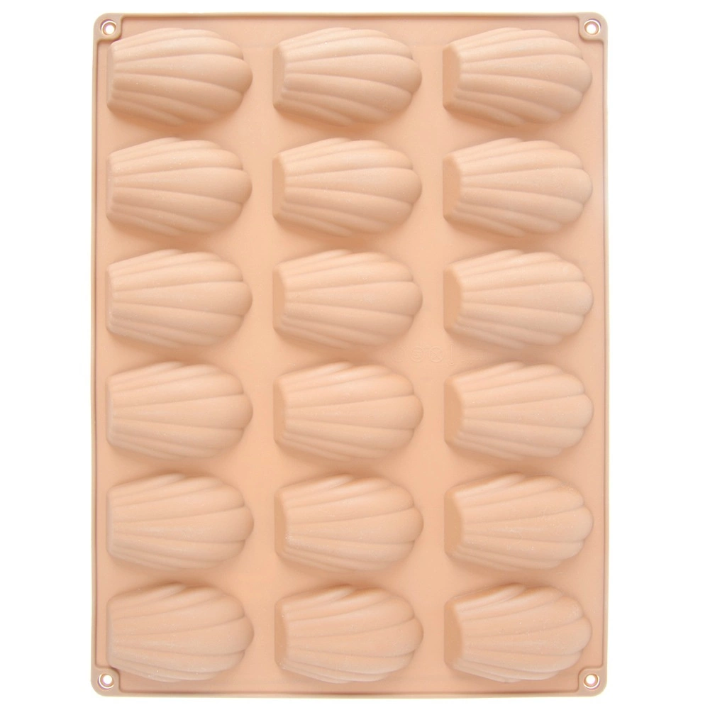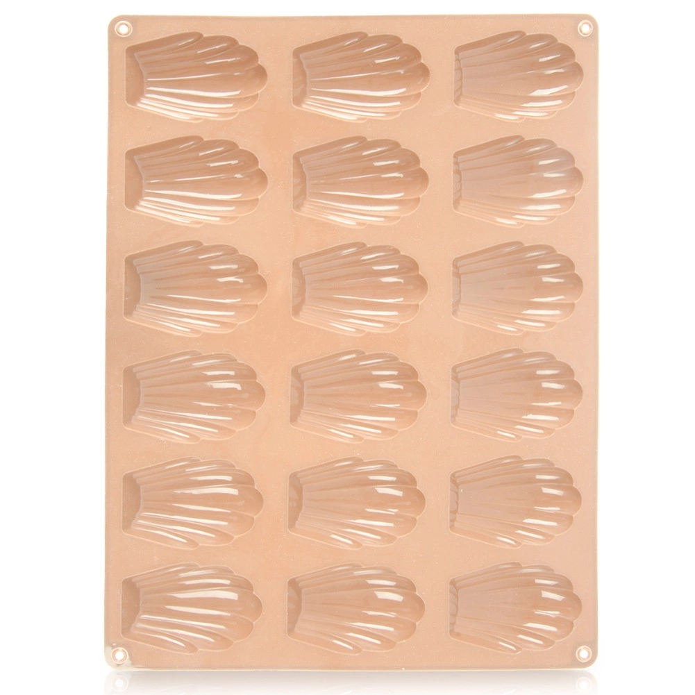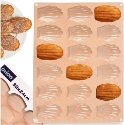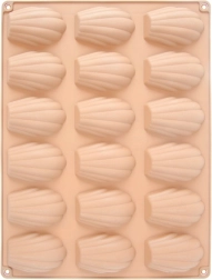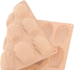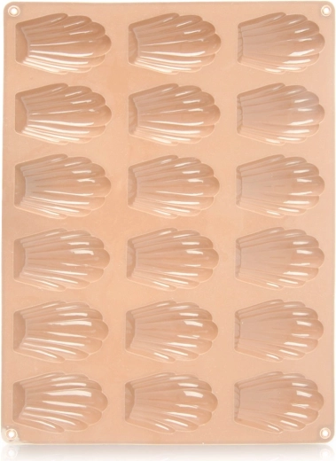 Această formă din silicon bej este ideală pentru coacerea îndrăgitelor madeleine franceze, precum și pentru realizarea de ciocolată și praline de casă în formă de scoică. Suprafața este natural antiaderentă, astfel că nu este necesară ungerea cu unt sau tapetarea cu făină – bucățile finite se scot ușor fără a deteriora forma.