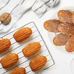 După coacere, lăsați madeleinele să se răcească pe un grătar pentru o textură perfectă și frăgezime, fără condens.
