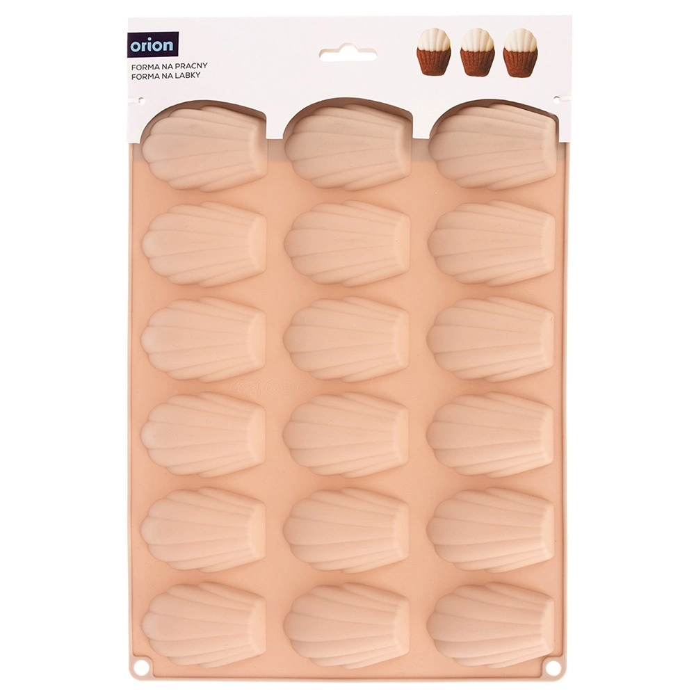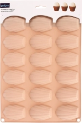 Forma practică din silicon pentru copt madeleine și praline vă permite să pregătiți până la 18 bucăți simultan. Datorită siliconului antiaderent, aluatul se scoate ușor fără ungere, forma este ușoară și flexibilă, rezistentă în intervalul -40 °C până la +220 °C și potrivită pentru cuptor, cuptor cu microunde și congelator. Pentru întreținere facilă este compatibilă cu mașina de spălat vase. Calitate verificată ORION.