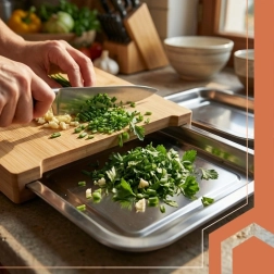 Descoperă tocătorul inteligent care accelerează tăierea și curățenia. Două tăvițe glisante colectează ingredientele tăiate sau resturile, astfel încât lucrezi curat și eficient. Placa din bambus este solidă, rezistentă la umiditate și, în același timp, blândă cu cuțitele.