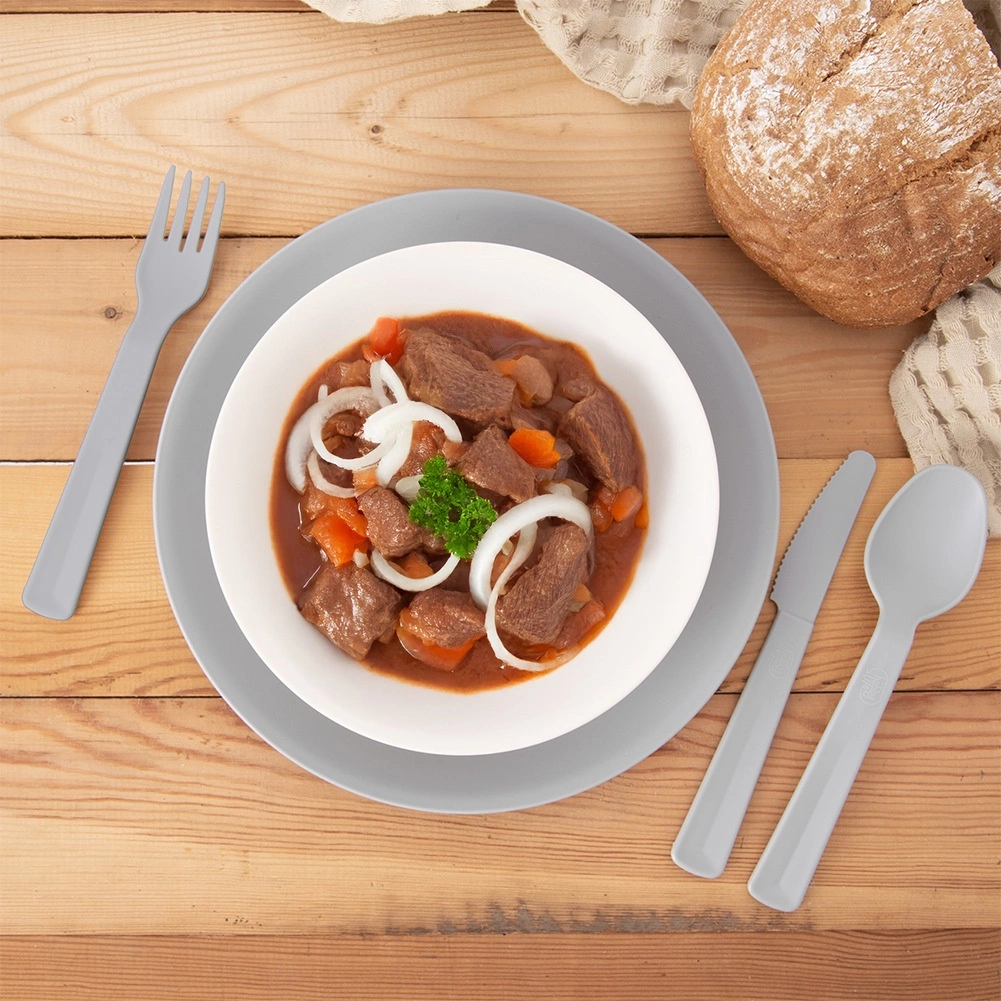 Setul de cuțite SANDY îmbină greutatea redusă, durabilitatea și confortul în utilizare. Datorită formei ergonomice și lamei ușor zimțate, sunt ideale pentru uz zilnic la masă, la picnic, în grădină și la camping. Culoarea gri se potrivește ușor cu alte accesorii.