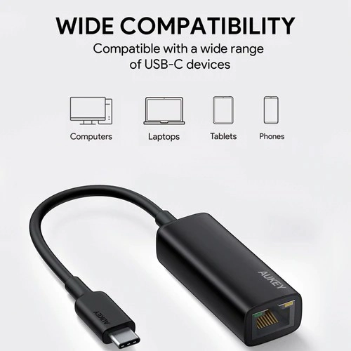 Adaptorul AUKEY USB‑C la RJ45 adaugă laptopului, ultrabookului sau tabletei dvs. un ethernet gigabit pentru o conexiune rapidă și stabilă. Datorită conectorului USB‑C și standardelor IEEE, este pe deplin compatibil cu dispozitive moderne și rețele mai vechi.