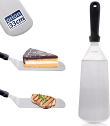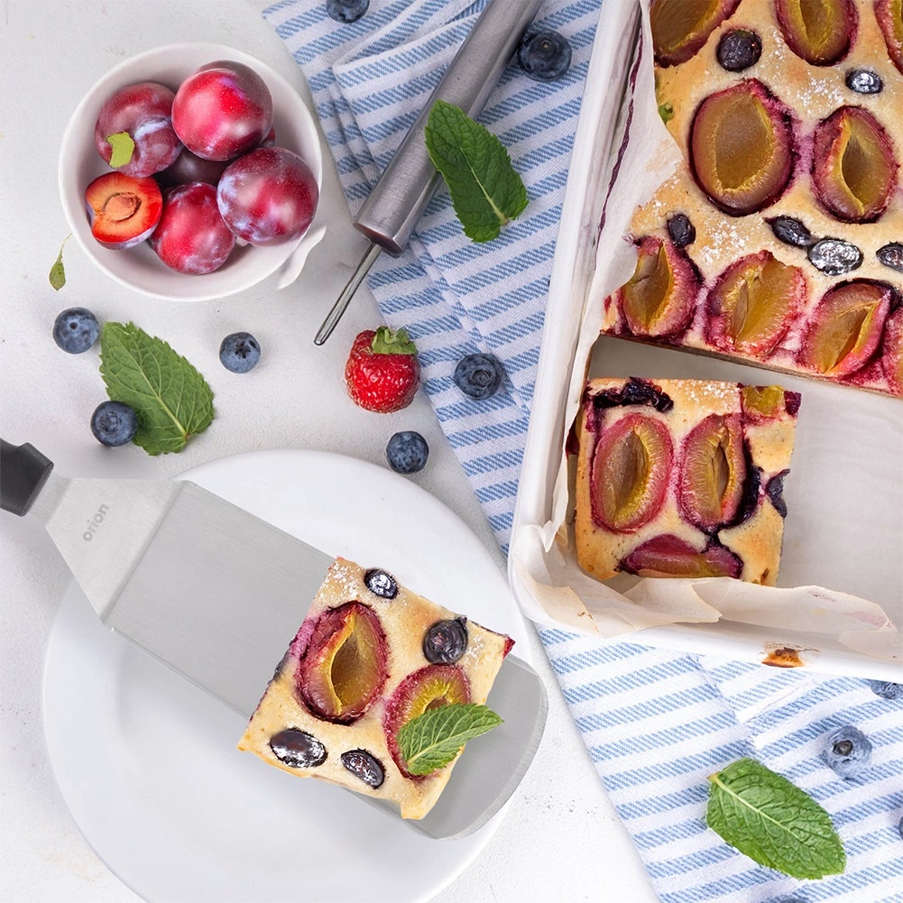 Lama plată și stabilă din oțel inoxidabil alunecă ușor sub preparat și permite întoarcerea în siguranță chiar și a porțiilor mai mari, fără a se destrăma.