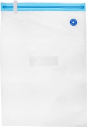 Folia groasă și transparentă cu dublu zip și valvă pentru evacuarea rapidă a aerului menține alimentele mai mult timp proaspete și protejate de umiditate, praf și mirosuri.