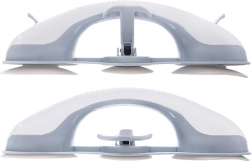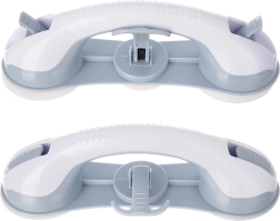 Practic mâner de baie cu ventuze pentru siguranță și stabilitate sporite la duș, lângă cadă sau toaletă. Montaj fără găurire, trei ventuze puternice, prindere ergonomică și cârlig practic pentru accesorii. Construcție solidă și durabilă din plastic de calitate, rezistent la umiditate. Instalare rapidă pe suprafețe netede, degresate, cu posibilitatea de a îndepărta mânerul oricând fără a deteriora faianța.