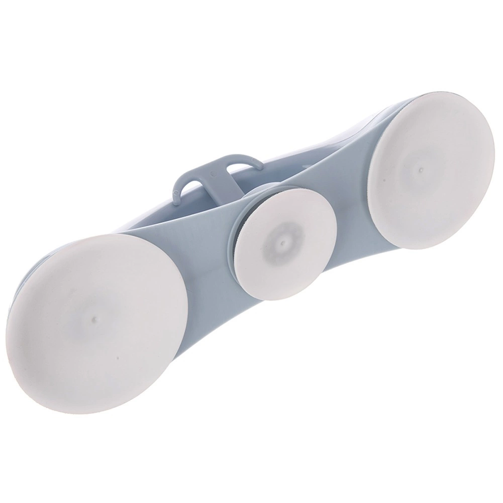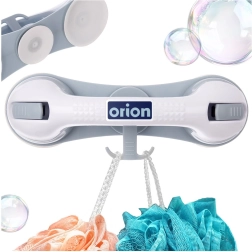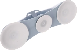 Corpul robust din plastic de calitate, în finisaj alb–gri, asigură o prindere stabilă și confortabilă. Trei ventuze puternice aderă ferm, iar cârligul integrat oferă loc pentru burete sau mănușa de spălat, păstrând baia ordonată.
