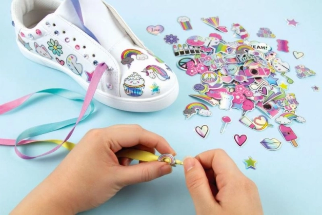 - Abțibilduri decorative, pandantive cu mărgele, șireturi pentru încălțăminte