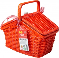 Acest frumos set de ceai este ideal pentru copiii de la 3 ani în sus. Conține tot ce este necesar pentru simularea unei petreceri de ceai, toate acestea într-un coș roșu din răchită, portabil.