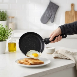 Ouă fragede, pește și legume fără ardere și cu minimum de ulei. Mâncarea se eliberează ușor, iar tigaia se curăță fără efort.