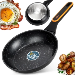 Tigaie elegantă și durabilă din aluminiu turnat sub presiune, cu suprafață granitată antiaderentă, ideală pentru prăjirea și înăbușirea porțiilor mici de carne, legume sau ouă. Datorită marginilor mai adânci și transferului rapid de căldură, gătește economic și uniform, obținând rezultate excelente chiar și cu o cantitate minimă de ulei.