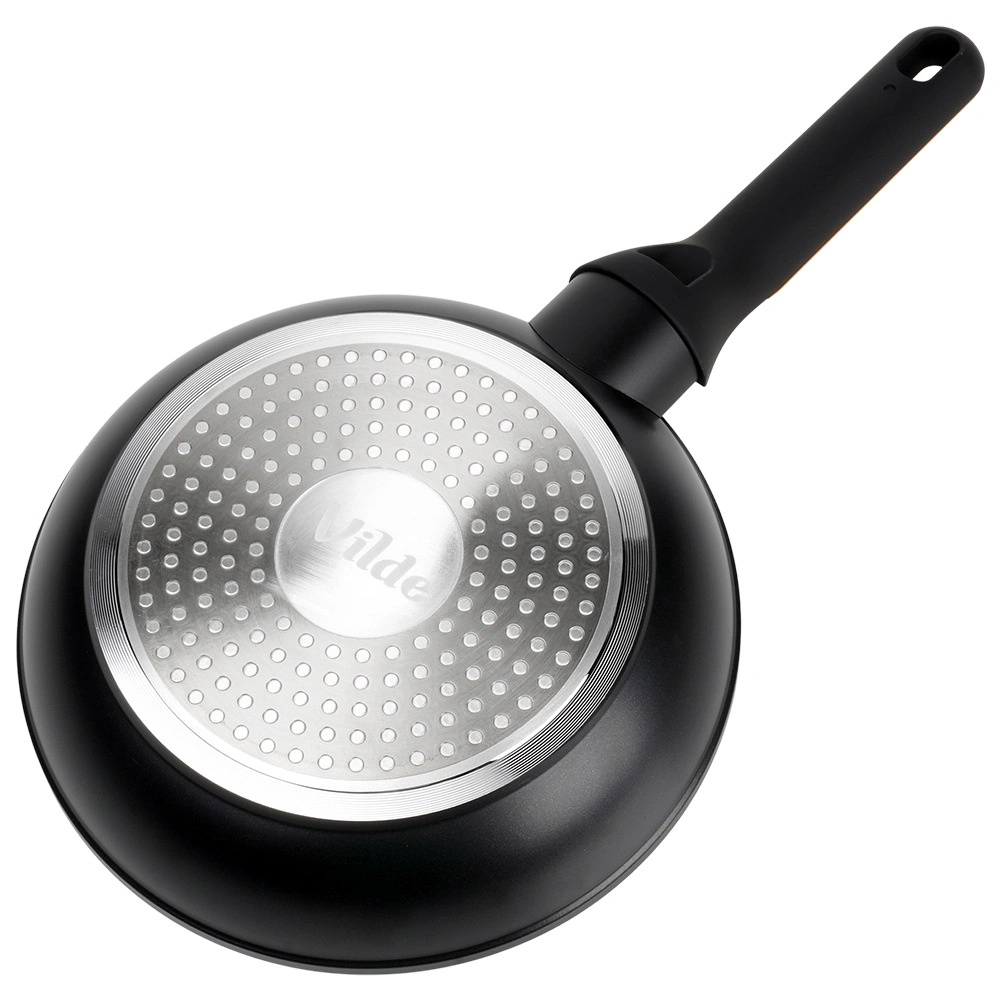 Corpul din aluminiu turnat și baza pentru inducție asigură transfer eficient de căldură pentru prăjire și înăbușire economice și uniforme.