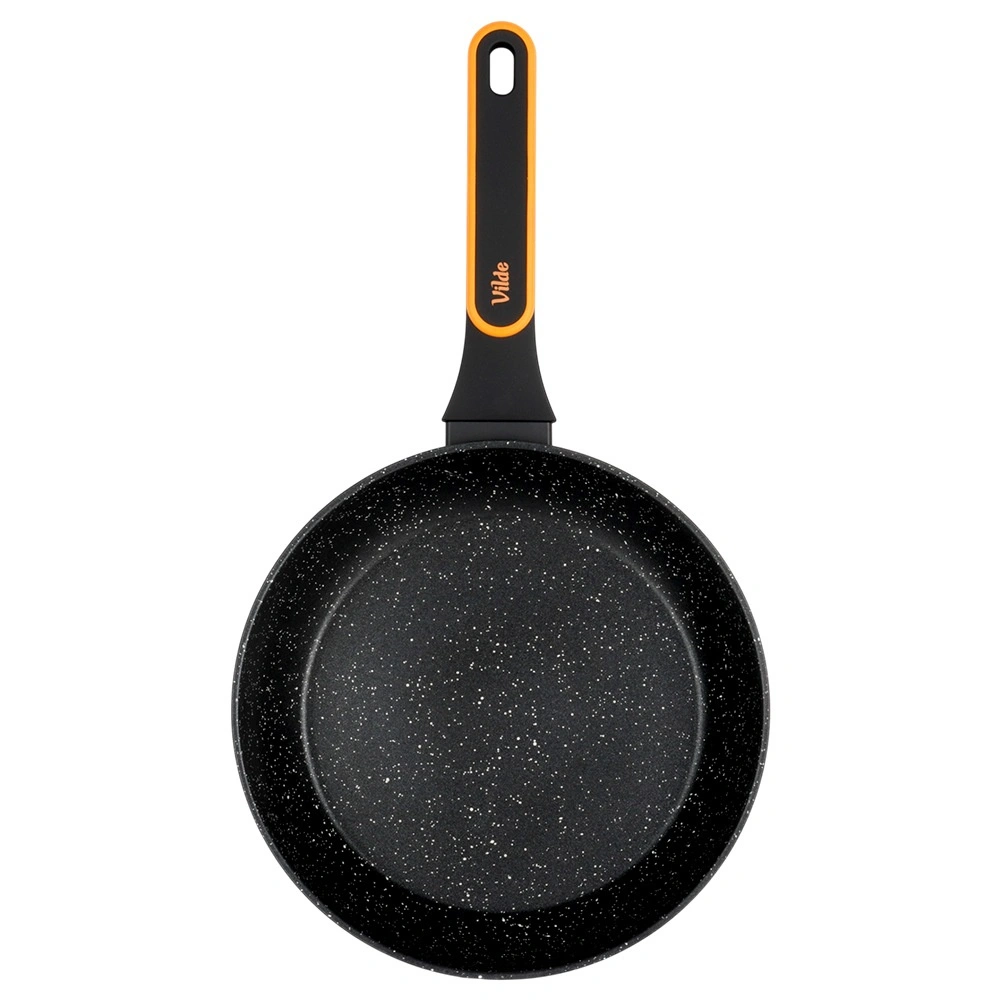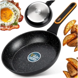 Această tigaie din granit, turnată din aluminiu, îmbină durabilitatea, aspectul elegant și proprietăți excelente de utilizare. Stratul din granit antiaderent minimizează folosirea uleiului și simplifică curățarea, în timp ce fundul multistrat asigură încălzire rapidă și economică. Mânerul ergonomic modern, cu finisaj antiderapant, rămâne rece în timpul gătitului și se potrivește sigur în mână.