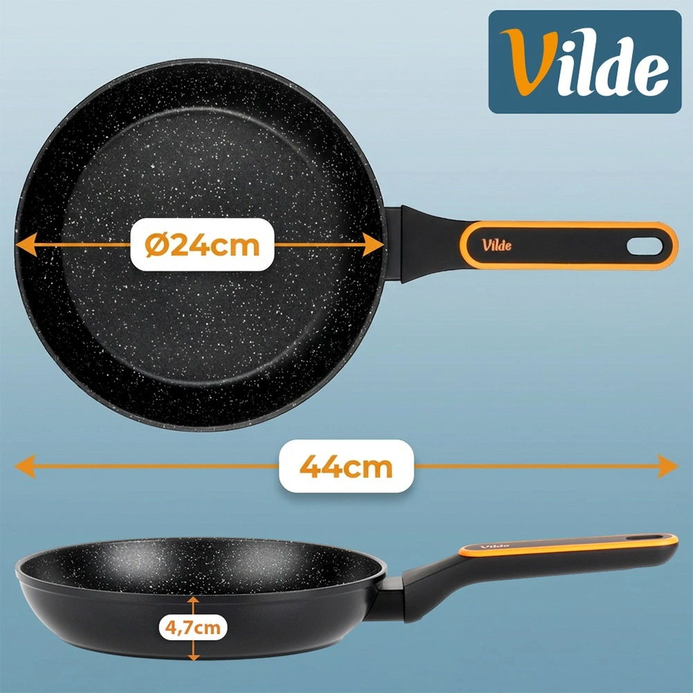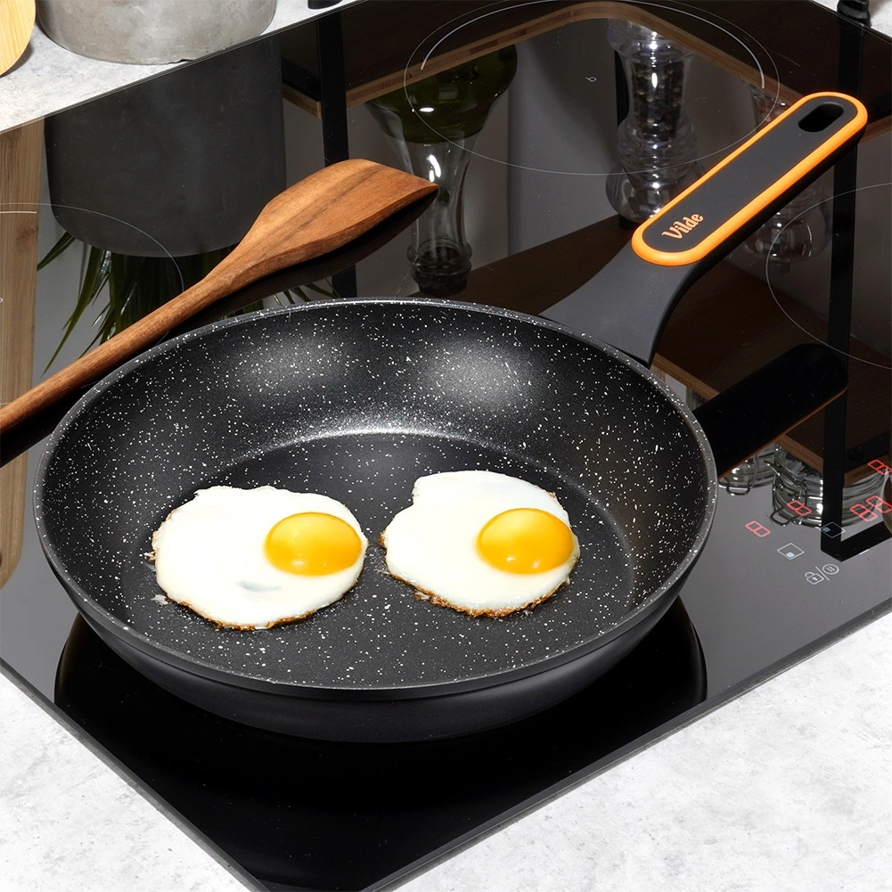 Ideală pentru prăjirea ouălor, cărnii și legumelor, precum și pentru înăbușire și reîncălzire rapidă. Tigaia este compatibilă cu plite pe gaz, electrice, vitroceramice și cu inducție și poate fi spălată în mașina de spălat vase.
