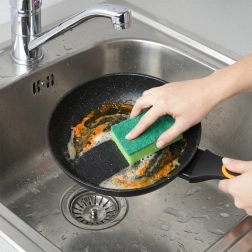 Acoperirea durabilă din granit previne lipirea și permite gătitul cu un minim de grăsime. Mâncarea se eliberează ușor, iar tigaia se curăță rapid.