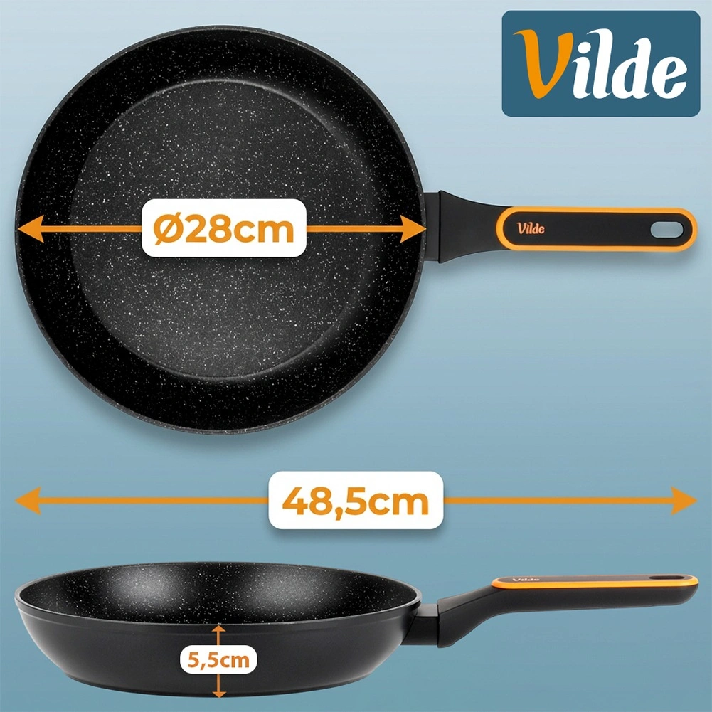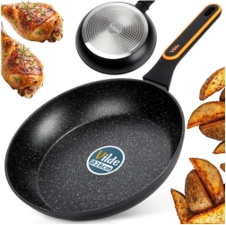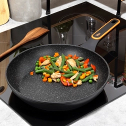Tigaie din granit de înaltă calitate, cu diametrul de 28 cm, din aluminiu turnat, pentru gătit zilnic. Oferă un strat antiaderent pentru prăjire sănătoasă cu minimum de grăsime, distribuție rapidă și uniformă a căldurii și mâner ergonomic, antialunecare. Potrivită pentru toate tipurile de plite, inclusiv inducție și mașina de spălat vase.