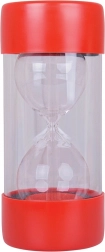 Această clepsidră robustă, cu recipient interior din sticlă și carcasă exterioară protectoare din plastic, este ideală pentru temporizarea sarcinilor scurte – de la învățare, citit și periajul dinților până la activități de joc și școlare. Nisipul roșu, clar vizibil, asigură orientare ușoară pe parcursul măsurării timpului.