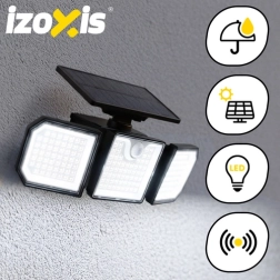 Lampa solară performantă IZOXIS cu 167 LED-uri și flux luminos de 500 lm iluminează fiabil grădina, intrarea, fațada și aleea. Datorită panoului solar 5,5 V / 1,5 W și bateriei de 1800 mAh, se încarcă pe timpul zilei și pornește automat după lăsarea întunericului. Senzorul de mișcare, senzorul de amurg și 3 moduri asigură lumină doar atunci când este nevoie. Protecția IP65 și reflectoarele laterale garantează un unghi larg de acoperire și o durată de viață îndelungată, fără cabluri și costuri de electricitate.