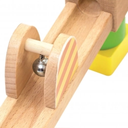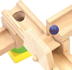 Pistă creativă cu bile pentru micii constructori, care va încânta orice copil! Lemn masiv și culori vii pentru o experiență atractivă, în timp ce copiii construiesc diferite poduri, tuneluri și trasee pentru bilele lor.