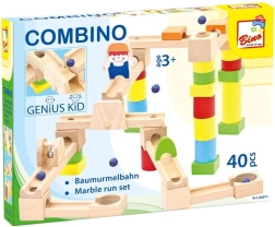 Setul conține 40 de piese, dintre care 34 formează pista și 6 sunt bile din sticlă. Piesele din lemn masiv în culori naturale și vii oferă un farmec vizual jocului și îi ajută pe copii să își exerseze concentrarea și îndemânarea.