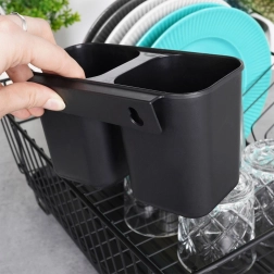Coșul pentru tacâmuri cu două compartimente, detașabil poate fi agățat în interiorul sau în exteriorul scurgătorului, după necesități, mărind spațiul pentru pahare sau căni. Datorită construcției gândite, scurgătorul este ușor de spălat și poate fi folosit și ca uscător de compartiment în chiuvetă.