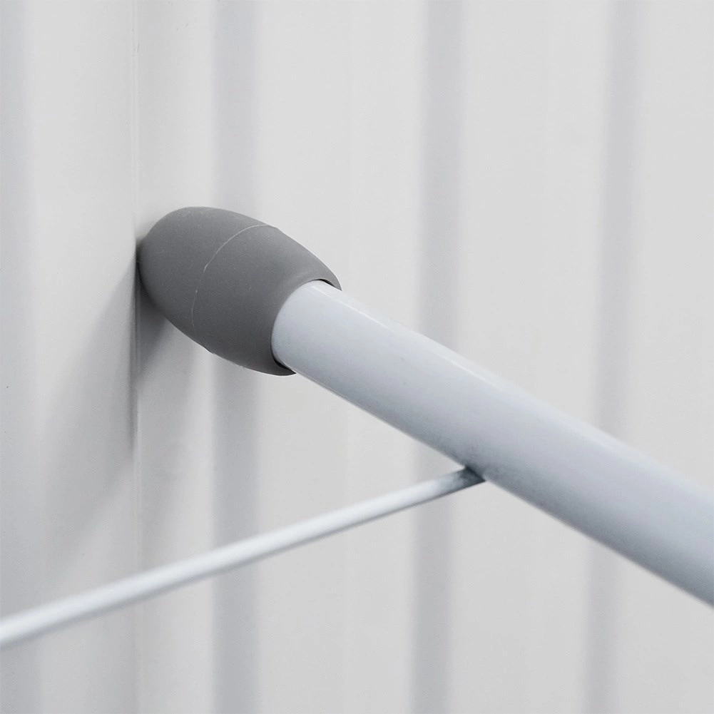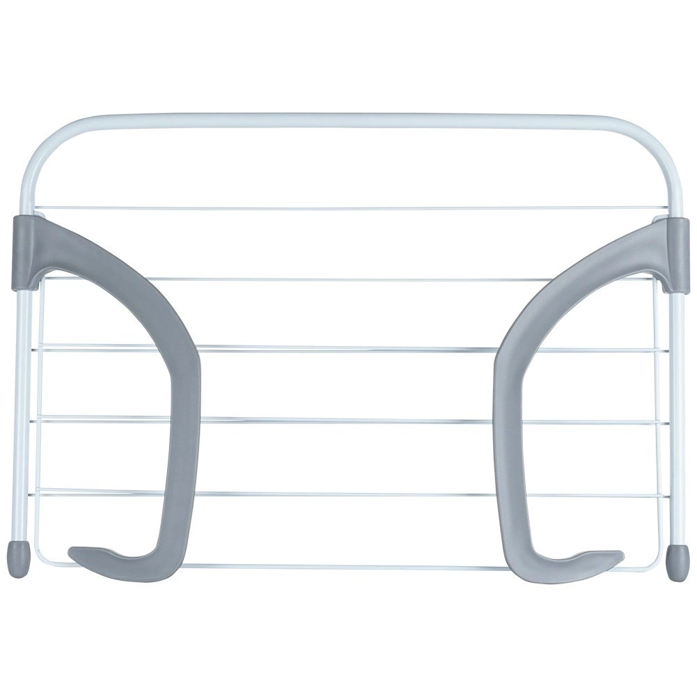 Montajul este rapid și fără unelte – este suficient să îl agățați cu ajutorul cârligelor rezistente din plastic. După utilizare, pliați uscătorul într-o formă plată și îl depozitați ușor în dulap sau sertar. Construcția durabilă din metal, în culoare albă, și prinderile gri asigură stabilitate și o durată de viață îndelungată.