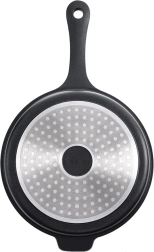 Descoperiți tigaia multifuncțională GRANDE pentru prăjire și înăbușire, care îmbină aluminiul turnat cu un strat antiaderent rezistent, tip granit. Datorită marginilor înalte și volumului de 3 l, pregătiți cu ușurință carne, legume și preparate la oală. Suprafața Pfluon Granit, fără PFOA și PTFE, permite gătitul cu minimum de grăsime și asigură curățare facilă.