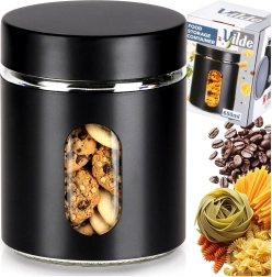 Elegantul borcan pentru alimente combină sticla clară cu învelișul protector negru și capacul înșurubabil pentru etanșeitate de încredere. Este perfect pentru cafea, zahăr, paste, nuci, fructe uscate sau ciuperci uscate. Datorită ferestrei transparente vedeți mereu cantitatea și conținutul fără a deschide borcanul.
