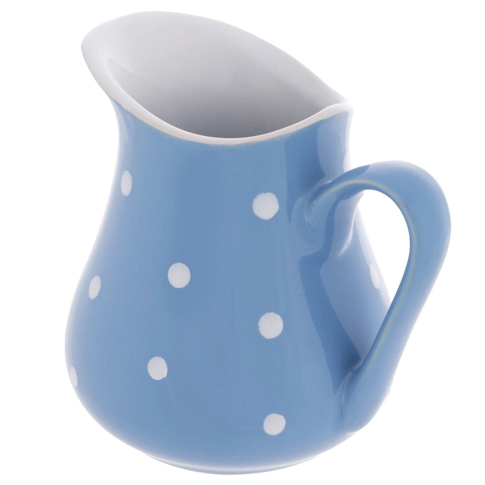 Ulciorelul ceramic universal este potrivit pentru apă, limonadă, vin, lapte și frișcă, precum și pentru servirea sosurilor. Datorită dimensiunilor compacte, se potrivește de minune la micul dejun, la ceaiul de la ora cinci și la petrecerile de acasă. Glazura albastră cu buline albe aduce mesei un accent jucăuș și elegant.