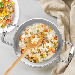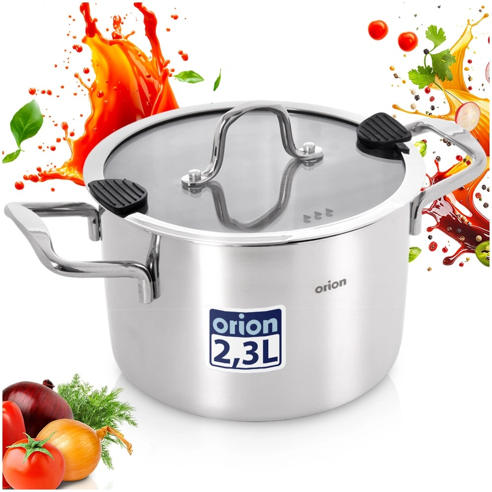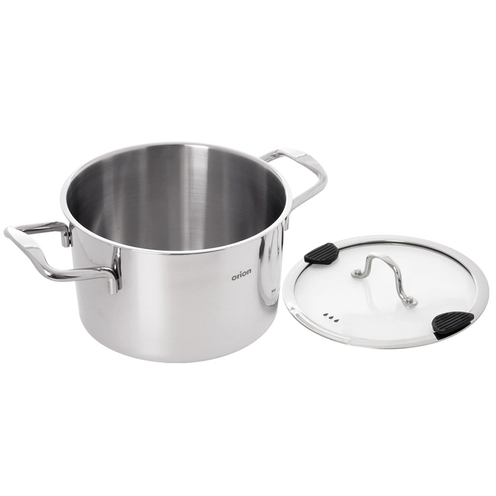 Oala din inox VENICE 18 cm (2,3 l) combină aspectul elegant cu practicitatea de zi cu zi. Fabricată din oțel inoxidabil 304 de calitate, cu finisaj lustruit, completată de un capac rezistent din sticlă. Baza multistrat cu miez de aluminiu asigură încălzire rapidă și uniformă pentru gătit economic și fiabil.