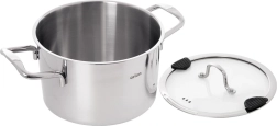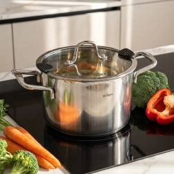 Oală practică din inox cu volum de 2,3 l și capac din sticlă, ideală pentru gătit, înăbușit și copt zilnic. Are bază multistrat pentru distribuție uniformă a căldurii, capac cu cioc de turnare și elemente din silicon pentru strecurare ușoară și este potrivită pentru toate tipurile de plite, inclusiv inducție, precum și pentru cuptor până la 200 °C. Se întreține ușor și poate fi spălată în mașina de spălat vase.