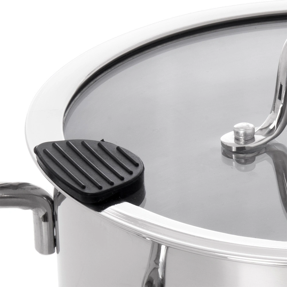 Capacul din sticlă are cioc de turnare integrat și orificii pentru abur, astfel încât puteți scurge comod apa de la paste sau legume direct din oală. Elementele din silicon sporesc siguranța și confortul la strecurare. Oala este potrivită pentru gaz, electric, ceramic și inducție, precum și pentru cuptor până la 200 °C. După utilizare, se spală ușor în mașina de spălat vase.