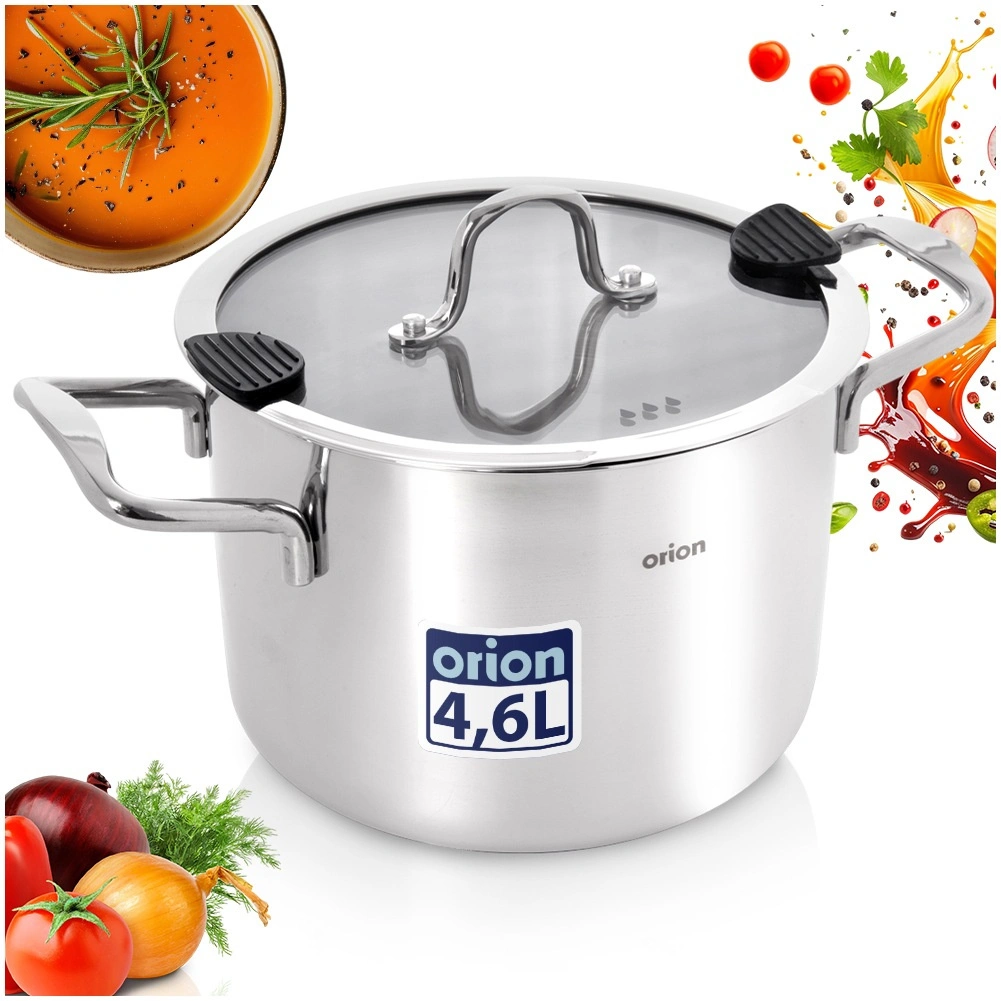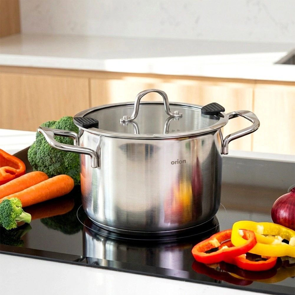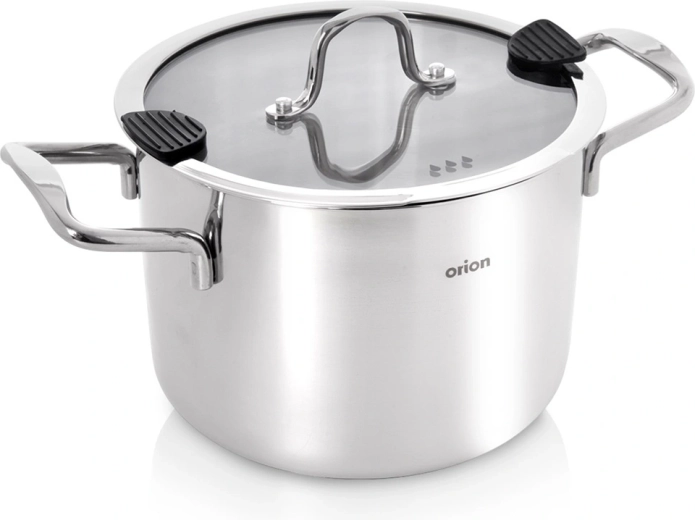 Oală practică din inox VENICE, cu volum de 4,6 l și diametru de 20 cm, ideală pentru gătit zilnic, înăbușire și coacere. Datorită otelului inoxidabil 304, capacului de sticlă cu gură de scurgere și fundului multistrat cu aluminiu, oferă încălzire uniformă, scurgere comodă fără strecurătoare și durată lungă de viață. Potrivită pentru gaz, electric, ceramic și inducție și pentru cuptor până la 200 °C.