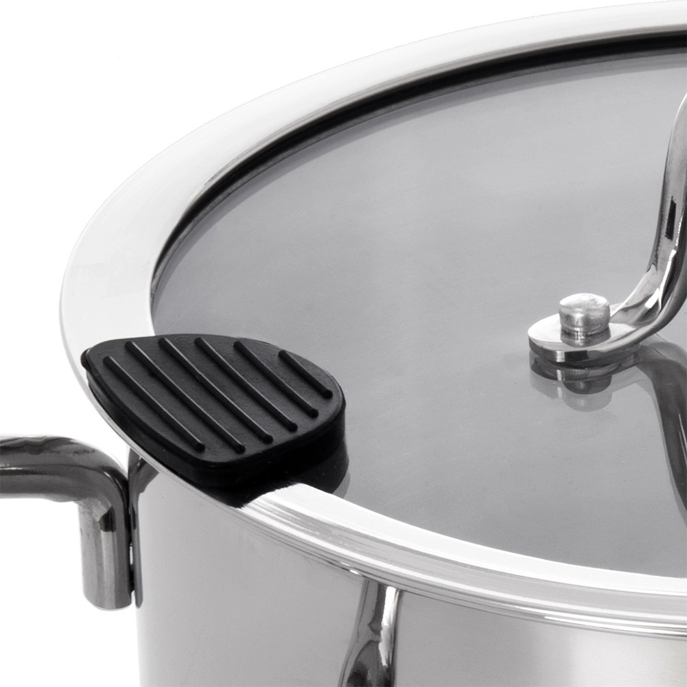 Oala este grozavă pentru supe, gulașuri, carne înăbușită și preparate simple la o singură oală. Capacul din sticlă securizată cu elemente din silicon permite scurgere sigură fără accesorii suplimentare și evacuarea confortabilă a aburului. Datorită designului elegant, puteți servi direct pe masă.